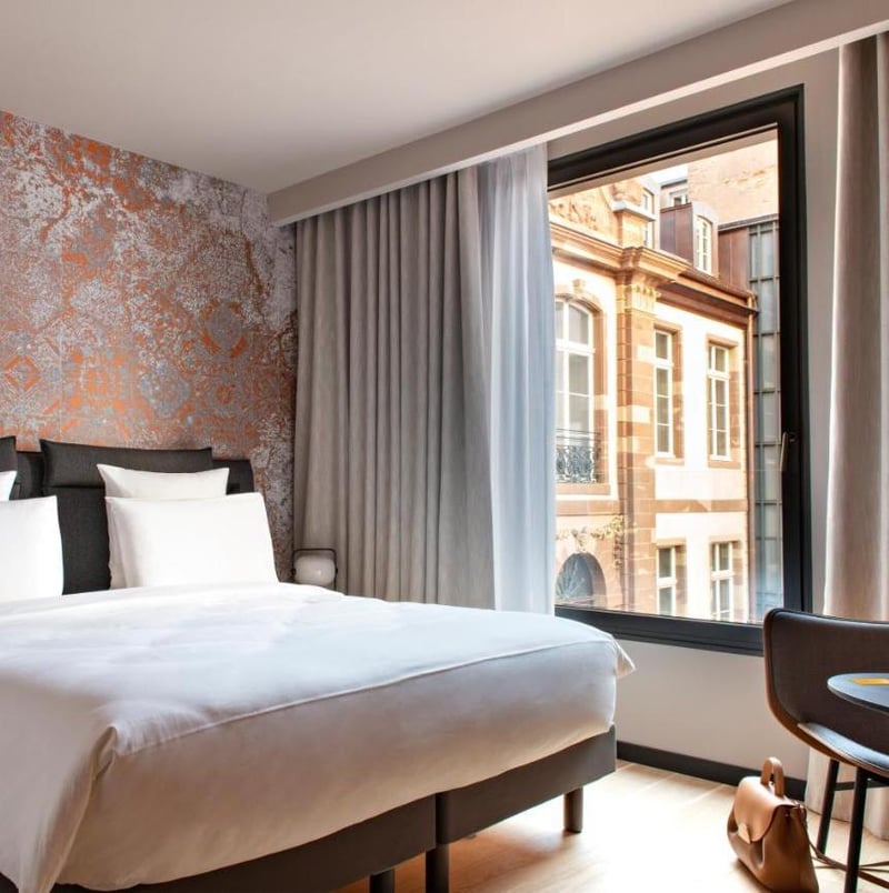 Idéalement situé au cœur de Strasbourg, le Léonor Hotel, ancien Palais de Justice, mêle avec élégance histoire et modernité. Avec ses 116 clés disponibles à partir de 145 € la nuit, cet hôtel 4 étoiles offre un cadre somptueux pour un séjour unique. Le design signé Jean-Philippe Nuel, allie le charme historique à un style contemporain, créant une atmosphère à la fois luxueuse et accueillante.