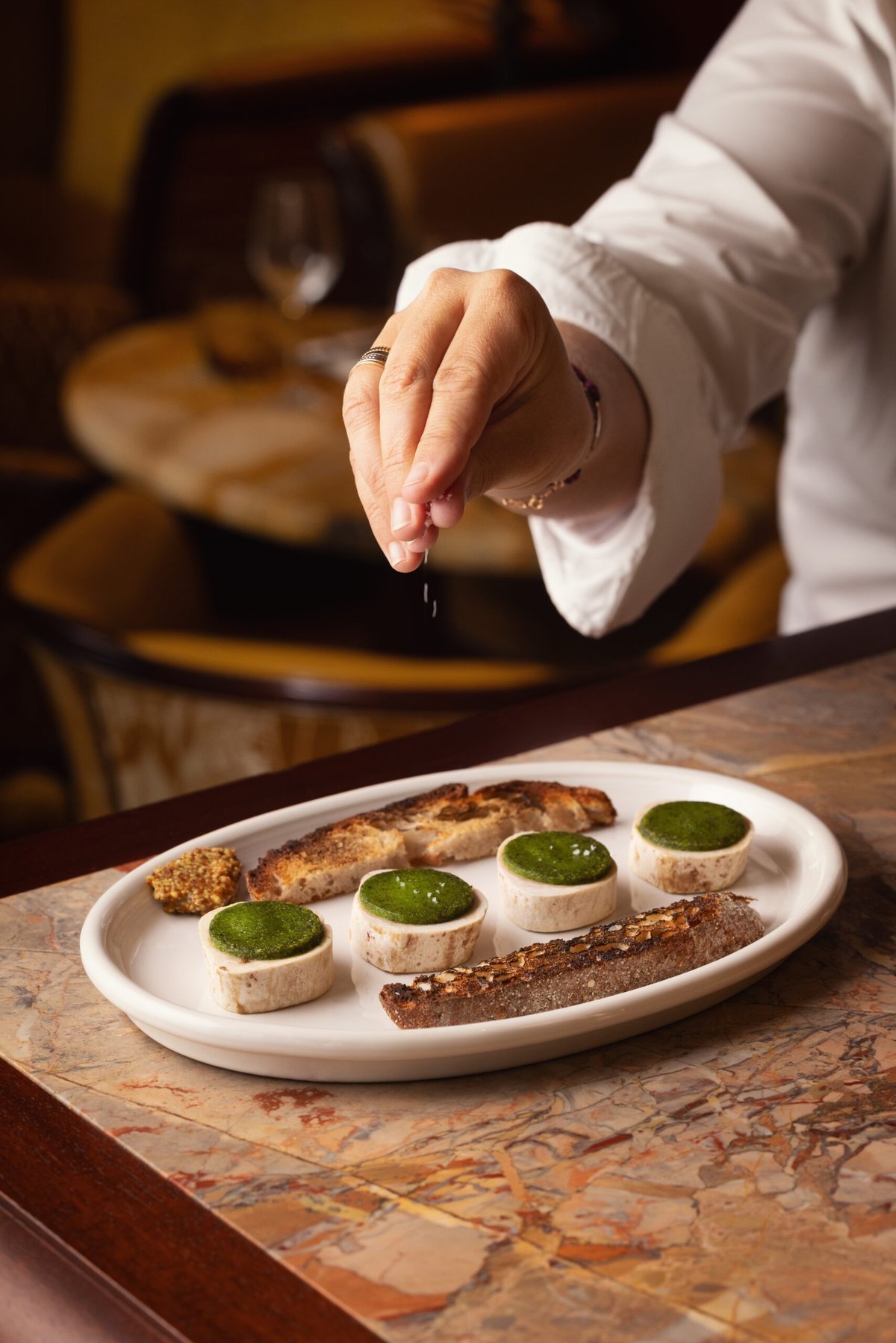 Chez 'Kitchen by Stephanie Le Quellec', chaque plat raconte une histoire, un héritage culinaire enrichi par la créativité de la chef. L'ambiance, alliant matériaux nobles et décor parisien d'époque, crée un cadre idéal pour savourer des plats emblématiques revisités avec modernité.