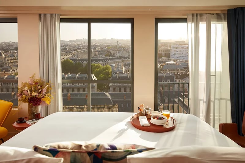 Le Brach Paris n'est pas seulement un lieu de séjour, c'est une expérience complète avec son bar à cocktails, son restaurant aux saveurs méditerranéennes et sa boutique pâtisserie. Le rooftop, avec son potager et son poulailler, offre une vue imprenable sur Paris et symbolise l'engagement de l'hôtel envers la durabilité et l'agriculture urbaine. Cet hôtel tendance du 16ème arrondissement est un véritable oasis de modernité et de culture au cœur de Paris.